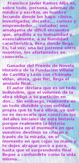 He leído este libro con auténtica devoción. No tengo palabras. Ayer asistí a la presentación, viajé desde Toledo solo para estar presente y conocer al autor, sabía que no me iba a decepcionar… ¡Por dios! Qué presentación más hermosa, qué bien trabajada… Y lo mejor la lectura… Me tienes enganchada, no dejes de escribir…